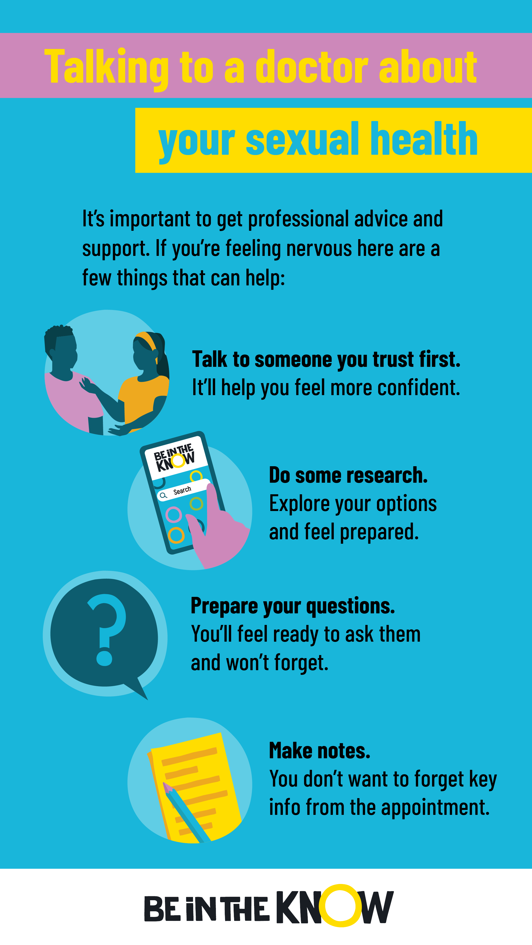 Talking to a doctor about things to do with sex can feel embarrassing. But doctors are there to look after your health, and that includes your sexual health.
